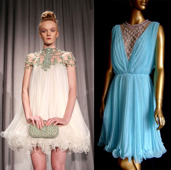 Marchesa Resort 2011, courtesy Marchesa (left and right); 60s angel sleeve mini dress (Miss Elliette?) from Fabled Fancy (center)