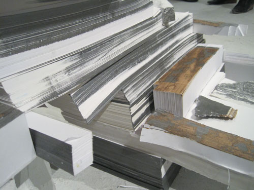 Emily engaged with her material, paper, in many ways, including burning, ripping, scoring, carving, plastering, lasercutting, weaving and leafing. In deliberate contrast to the rich tactile expression was the mostly monochromatic color schemes of the built landscapes.