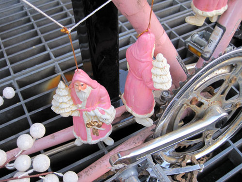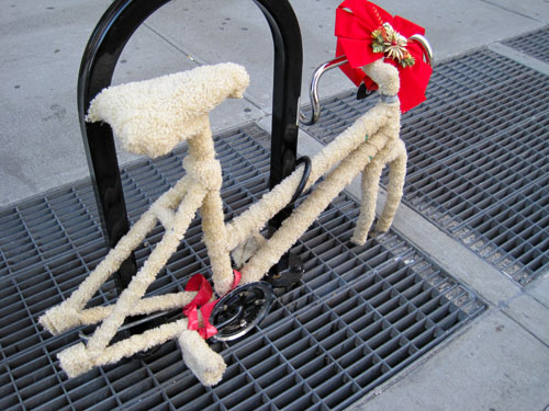 Venture out shopping or otherwise in New York City this time of year and you might encounter ad hoc bicycle art, drunk and disorderlies, crazy marketing ploys and extreme sugar highs. The city that never sleeps ratchets its energy up just a little more than usual. It makes me sorry I’ll be away over Christmas, and calls for obnoxious HTML borders. Check out: